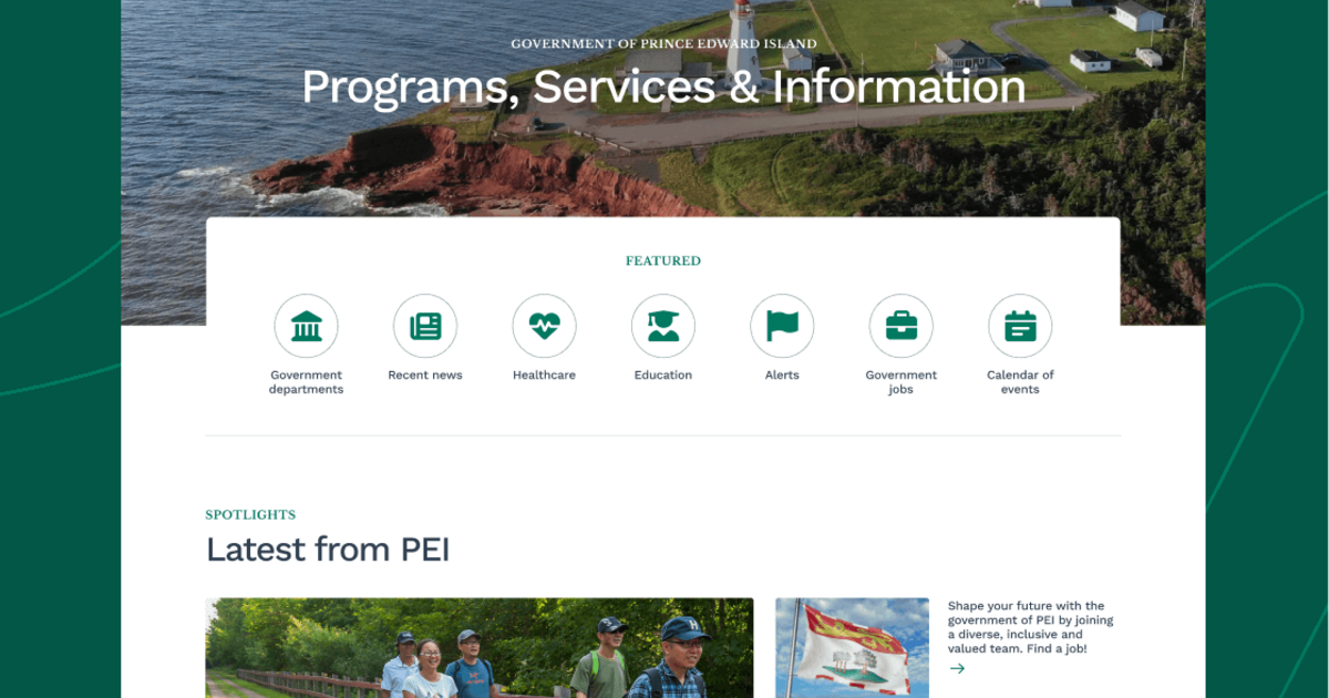 Le gouvernement de l'Île-du-Prince-Édouard avait besoin de mettre à jour son site Web avant la fin de la prise en charge de Drupal 7 en janvier 2025. Par conséquent, l'objectif du projet était de créer une nouvelle expérience de site Web Drupal 10 qui reflète la marque et maintient le site Web comme principale source d'information pour les résidents, ainsi que pour les visiteurs, les entreprises, les représentants du gouvernement et d'autres parties prenantes. Dans le cadre de la mise à jour de la plateforme, l'Île-du-Prince-Édouard souhaitait améliorer la fonctionnalité de recherche pour les requêtes essentielles. Cette migration Drupal a été l'occasion de mettre à jour les éléments visuels pour les conformer aux normes actuelles d'accessibilité et d'UX/UI et de mieux les aligner avec l'image de marque du gouvernement de l'Île-du-Prince-Édouard.