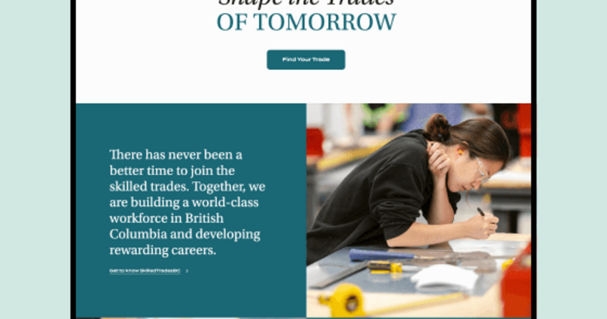 Un autre défi, du point de vue de l’image de marque et du marketing, était de changer la perception des métiers. Le nouveau site devrait contribuer à la mission de SkilledTradesBC, qui consiste à rehausser le profil des métiers qualifiés et à démontrer qu’il s’agit de parcours de carrière gratifiants et inclusifs.